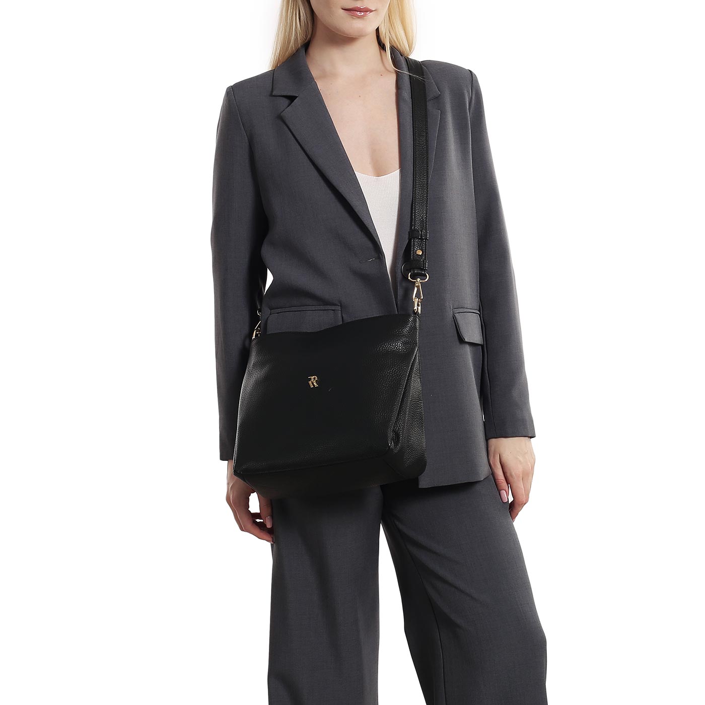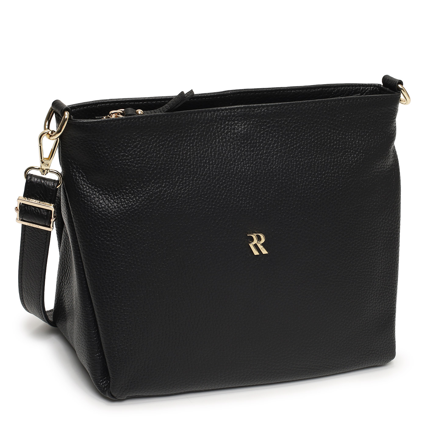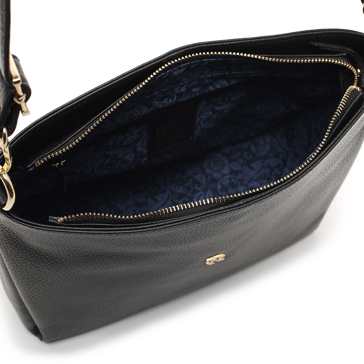 Женская сумочка из зернистой черной кожи через плечо